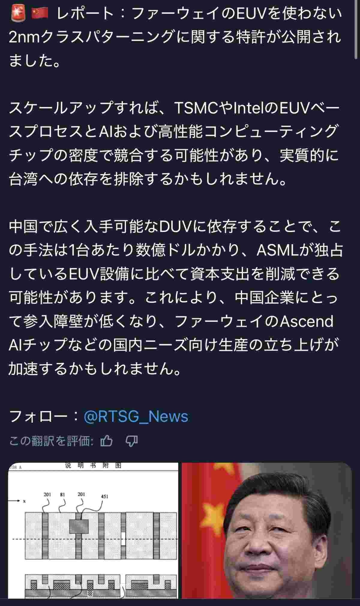 ファーウェイのEUVを使わない2nmクラスパターニングに関する特許が公開されました。