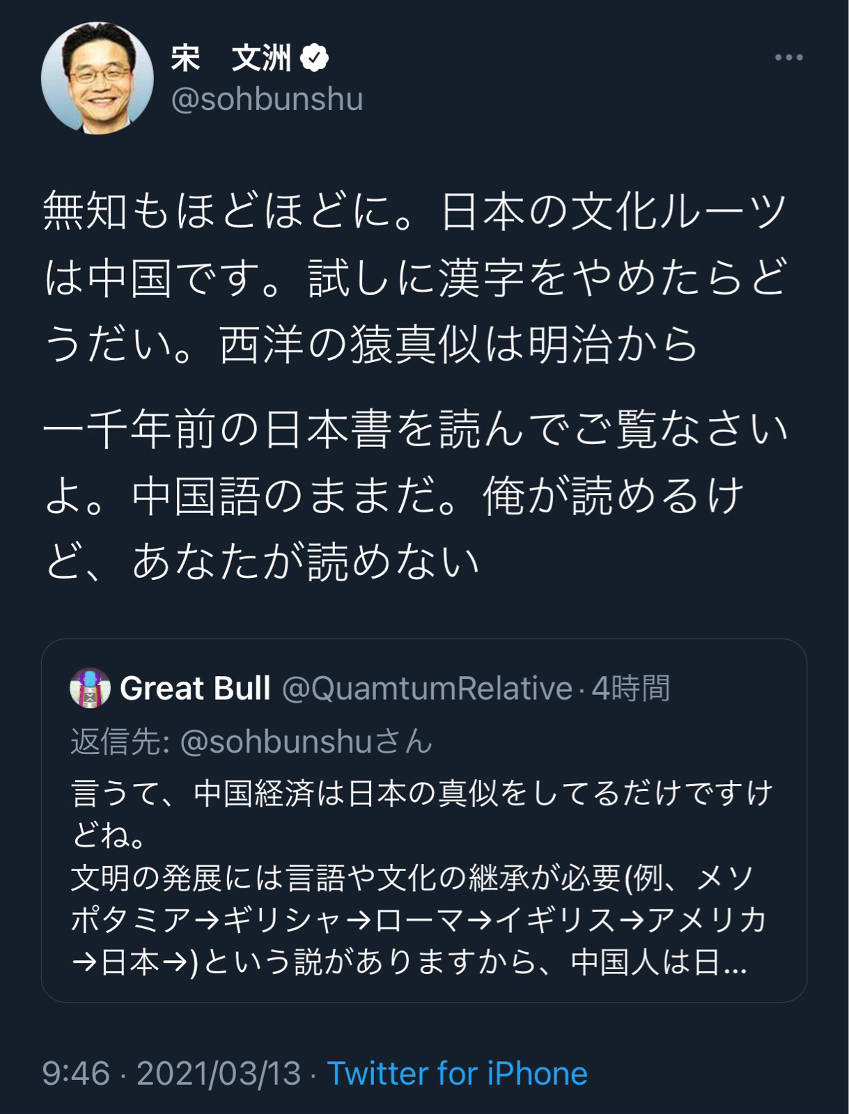 中国人(元日本在住)「日本の文化ルーツは全て中国。そんなに欧米が好きなら漢字使うの辞めろ」