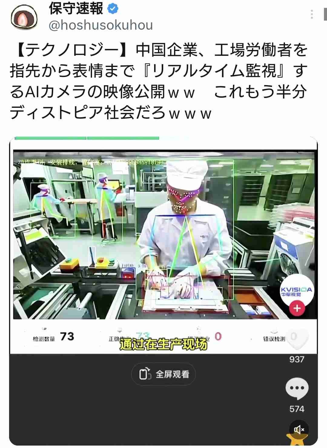 監視ってか動作分析だろうな、作業効率の良い作業者の動きに収斂するために使うんだろ