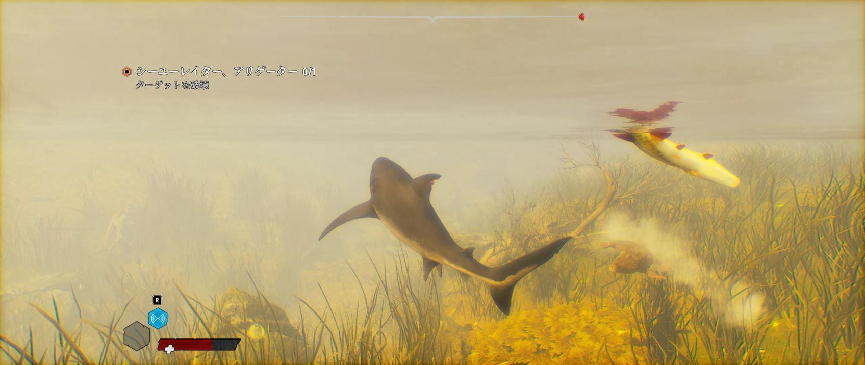 経験値を増やして成長していくというゲームだ。最初のチュートリアルで操作するのは主人公のサメではなく、主人公の母親。母親が捉えられてしまい、