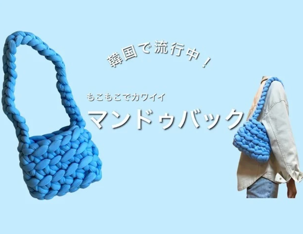 「マンドゥバッグ」とは、太めの毛糸で編んだチャンキーニットバッグのこと。もこもこした形がマンドゥ(餃子)に似ていることに由来し、Instagramでは1万6千件以上の投稿がヒット。この冬、MORE世代を中心に人気が高まっているアイテムです。