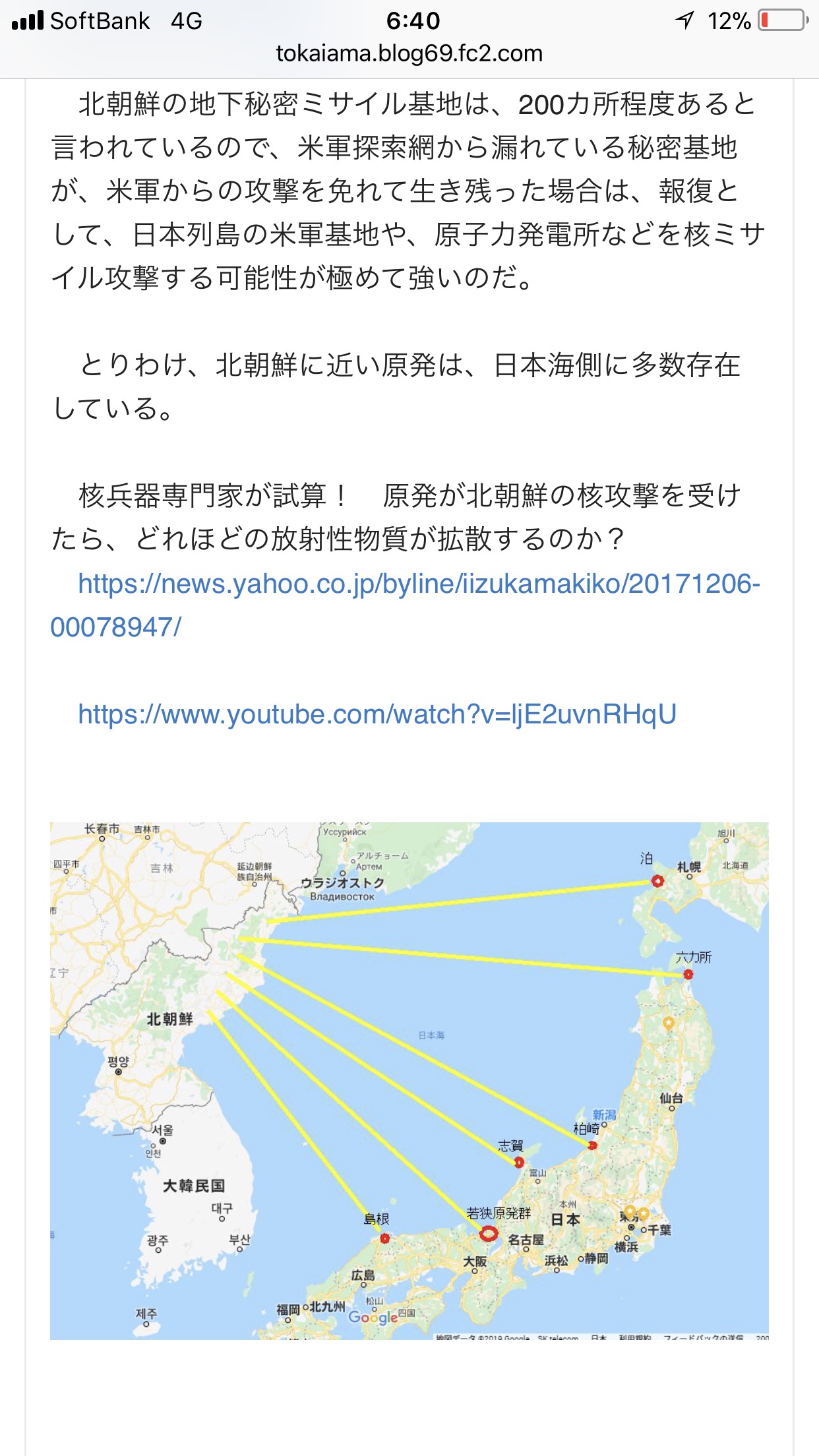 原子力発電所などを核ミサイル攻撃する可能性が極めて強いのだ。とりわけ、北朝鮮に近い原発は、日本海側に多数存在している。