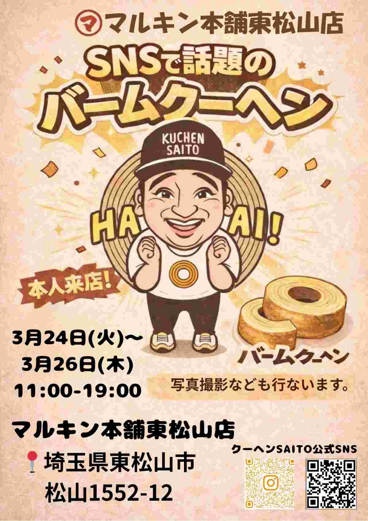 アカウントによれば「埼玉県の東松山での販売が終わったら次は東京に行きます」とし、28日からは「音楽・アート・食が交差するSpring Love 春風 2026で出店 沢山のご来店お待ちしております」と呼びかけていた。