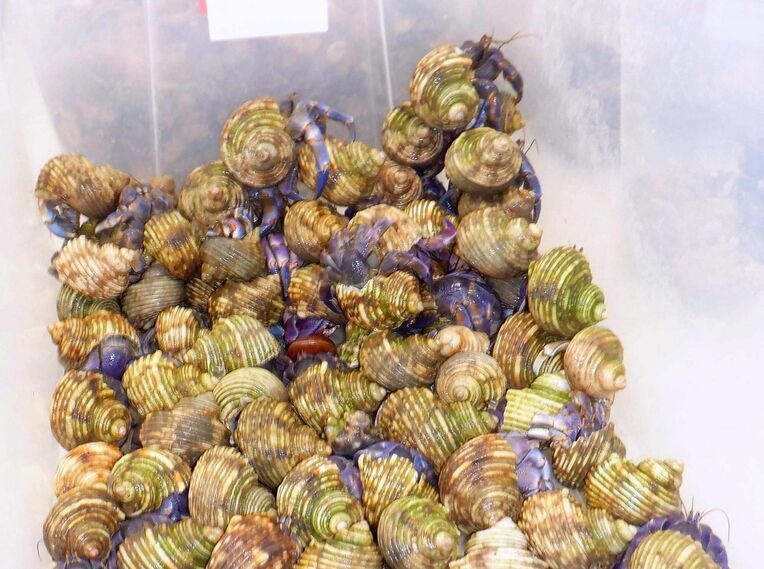 中国などで人気があり、紫色が特徴の「ムラサキオカヤドカリ」は1匹2万円などの高額で取引されることもあるという。
