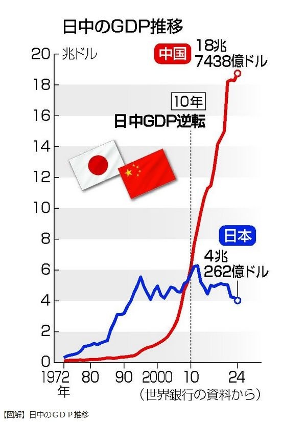 日本が再興して中国に勝てる可能性が少しでもあるなら話は別だが、更に倍々で差が開いて