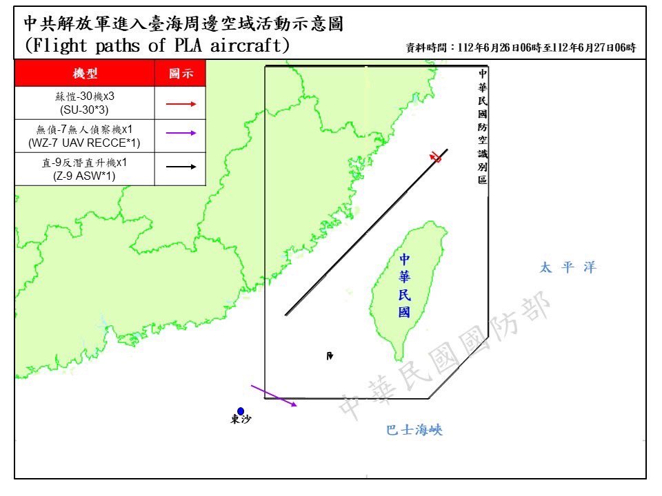 台湾国防軍、領海内で中国人民解放軍と交戦する姿勢を改めて表明Taipei, June 27 (CNA) Taiwan's military reiterated its stance Tuesday that it will attack Chinese warships and warplanes in a defensive action if they are detected within Taiwan's 12-nautical-mile territorial space.