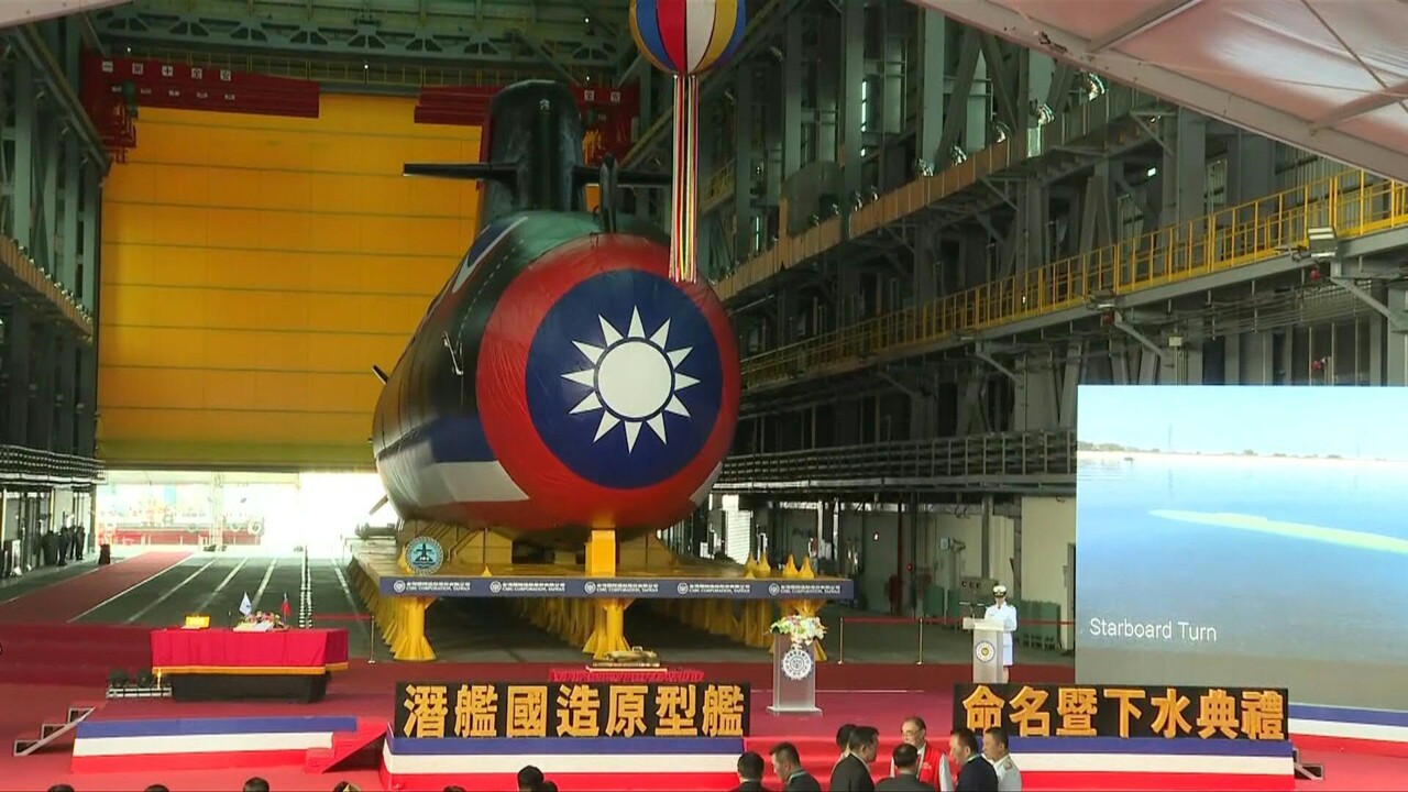 台湾が初めて自主建造した潜水艦「海鯤(Hai Kun)」の進水式が28日、南部・高雄で行われ、蔡英文総統が出席した。