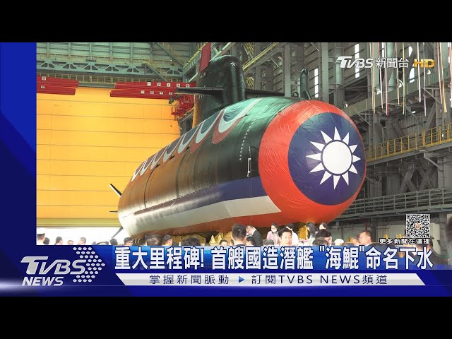 台湾が初めて自主建造した潜水艦「海鯤(Hai Kun)」の進水式が28日、南部・高雄で行われ、蔡英文総統が出席した。