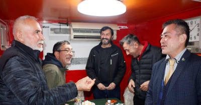 午後8時過ぎ、トルコ料理店に到着。「おい!兄弟!」。町長はコンテナ型の店に入り、店の人と熱烈なハグをした。記者が戸惑っていると、町長が店主ジノグル・ハサヌさんを紹介してくれた。町のトルコ人コミュニティーのまとめ役で、子ども食堂も運営し、町のイベントにも協力してくれるという。
