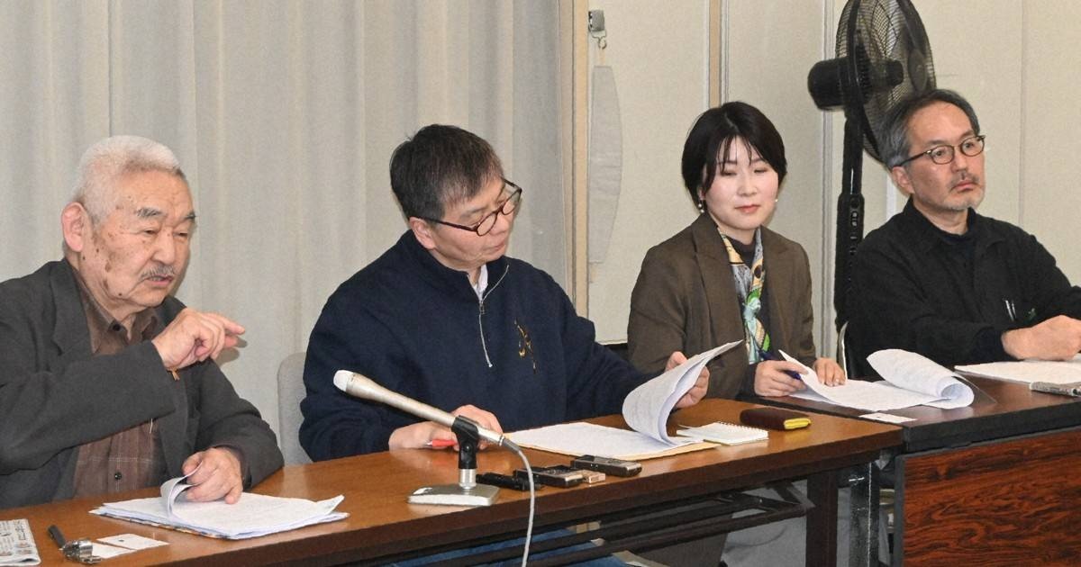 意見書提出前に、記者会見する市民団体の代表や大学教授ら=三重県庁で2026年2月16日午後1時38分、渋谷雅也撮影