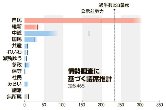 自維300議席超うかがう 中道半減も 参政・みらい勢い 朝日調査(朝日新聞) - Yahoo!ニュース