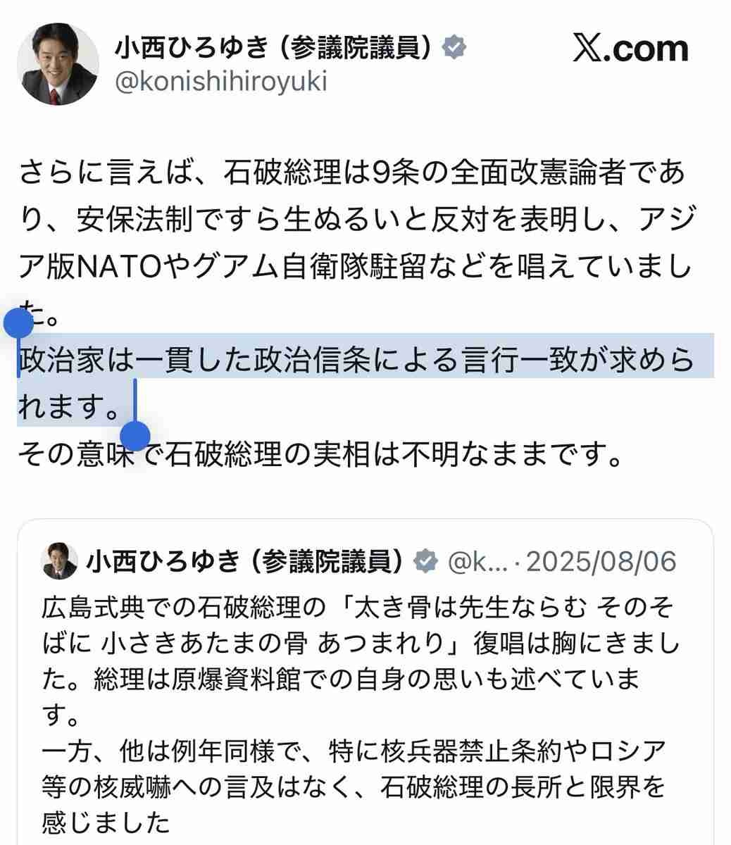 @konishihiroyuki 政治家は一貫した政治信条による言行一致が求められます。