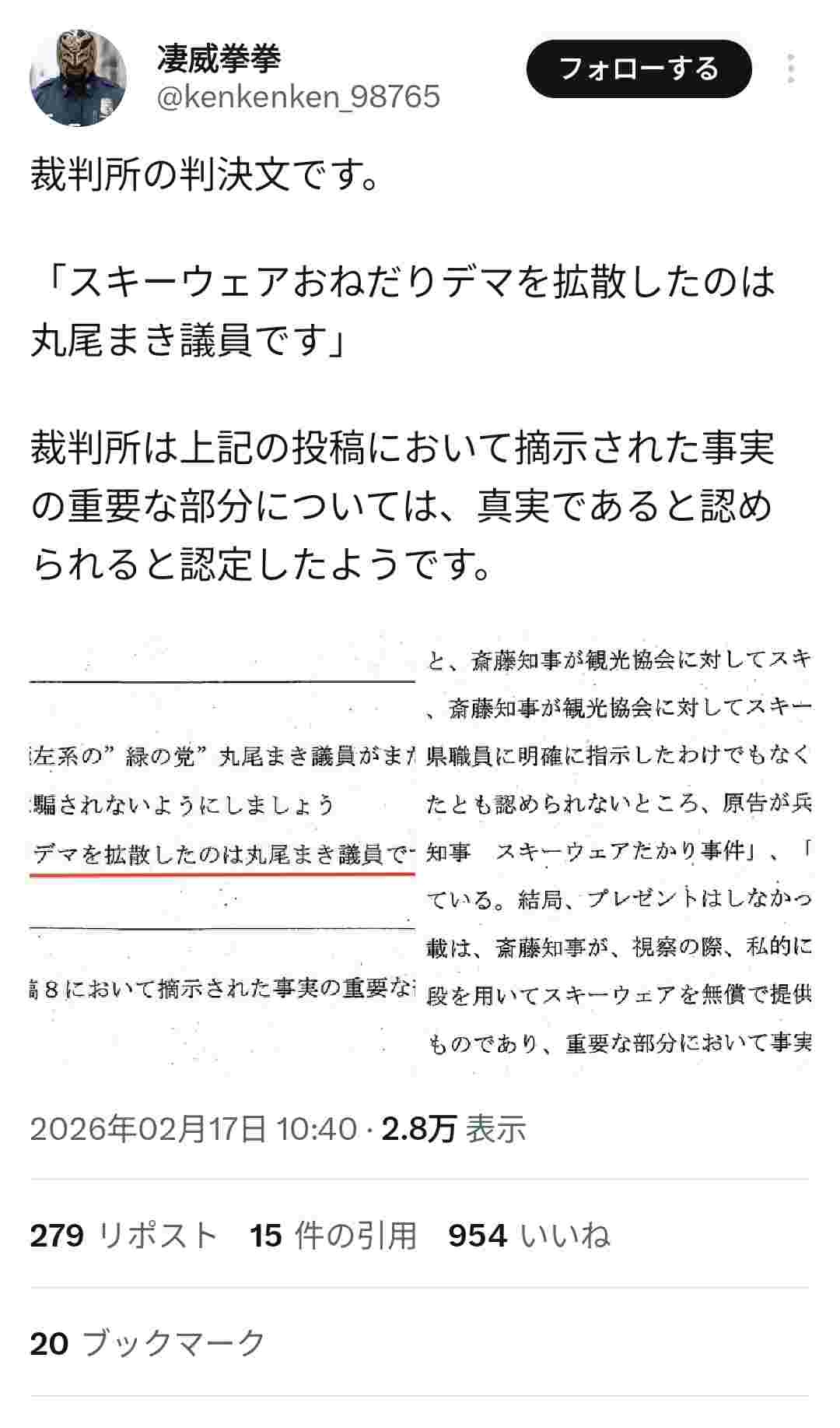 訴えたら逆にデマ拡散してたの認定されちゃうとかおもろいな