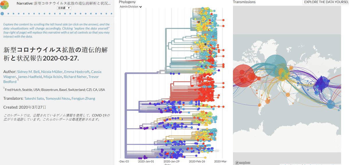 無償で公開されているオープンソースプロジェクト「ネクストストレイン」(Nextstrain.org)は、アウトブレイク(集団感染)を起こした病原体の博物館のようなものだ。世界各地の研究機関が、患者から採取したウイルスの遺伝子配列データをここに投稿する。ネクストストレインはそのデータを使って、感染の広がり方を示した世界地図や、ウイルスの系統樹を描き出している。(参考記事:「オープンソースな養鶏は可能か―――遺伝子を企業支配から解放する」)