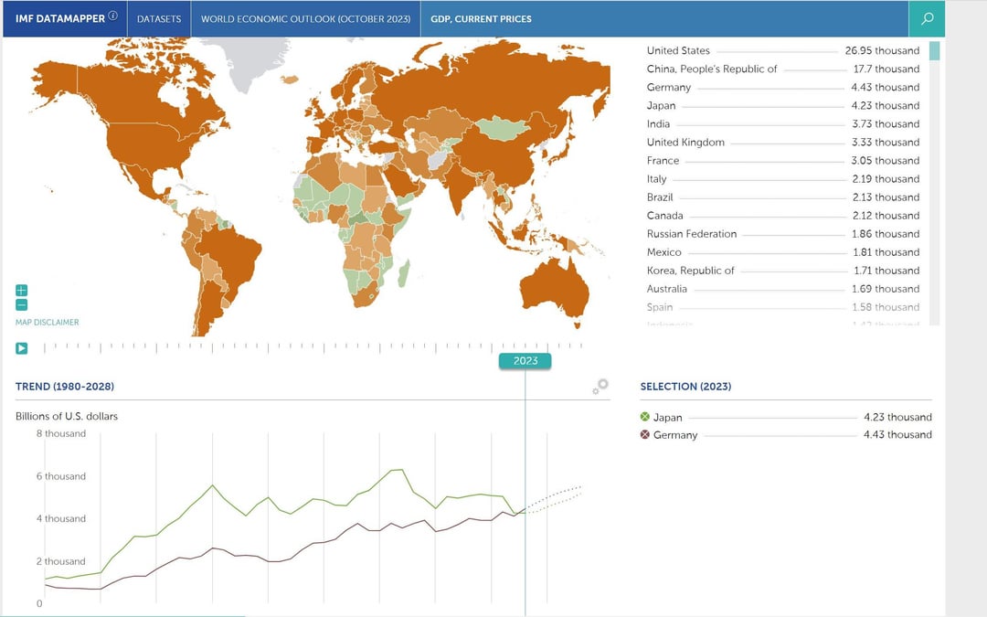 日本、ドイツに抜かれてGDP世界4位に転落 IMF発表