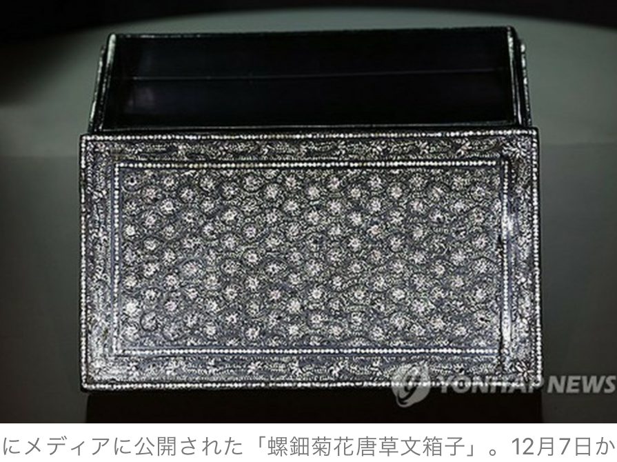 【ソウル聯合ニュース】韓国の国立古宮博物館(ソウル市鍾路区)は、日本から今年戻った高麗時代の螺鈿(らでん)箱「螺鈿菊花唐草文箱子」を公開する特別展を7日から来年1月7日まで開催する。