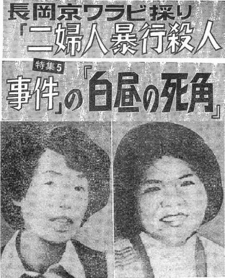 直接の死因は主婦A(当時43歳)が絞殺、主婦B(当時32歳)が刺殺。2人のリュックには、それぞれ空の弁当箱、採ったワラビ、財布が入ったままであった。検死の結果、死亡時刻はどちらも正午過ぎから午後2時半頃までと判明。