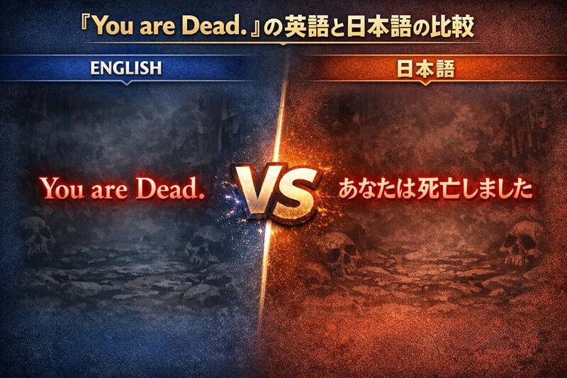 今回の話題の発端となったのは、翻訳会社Circle Translation代表の西墻慎一氏のXへのポストです。左側の画像は「YOU ARE DEAD」の表示の下に「Continue」「Load Game」「Quit」の選択肢とそれぞれの選択肢の