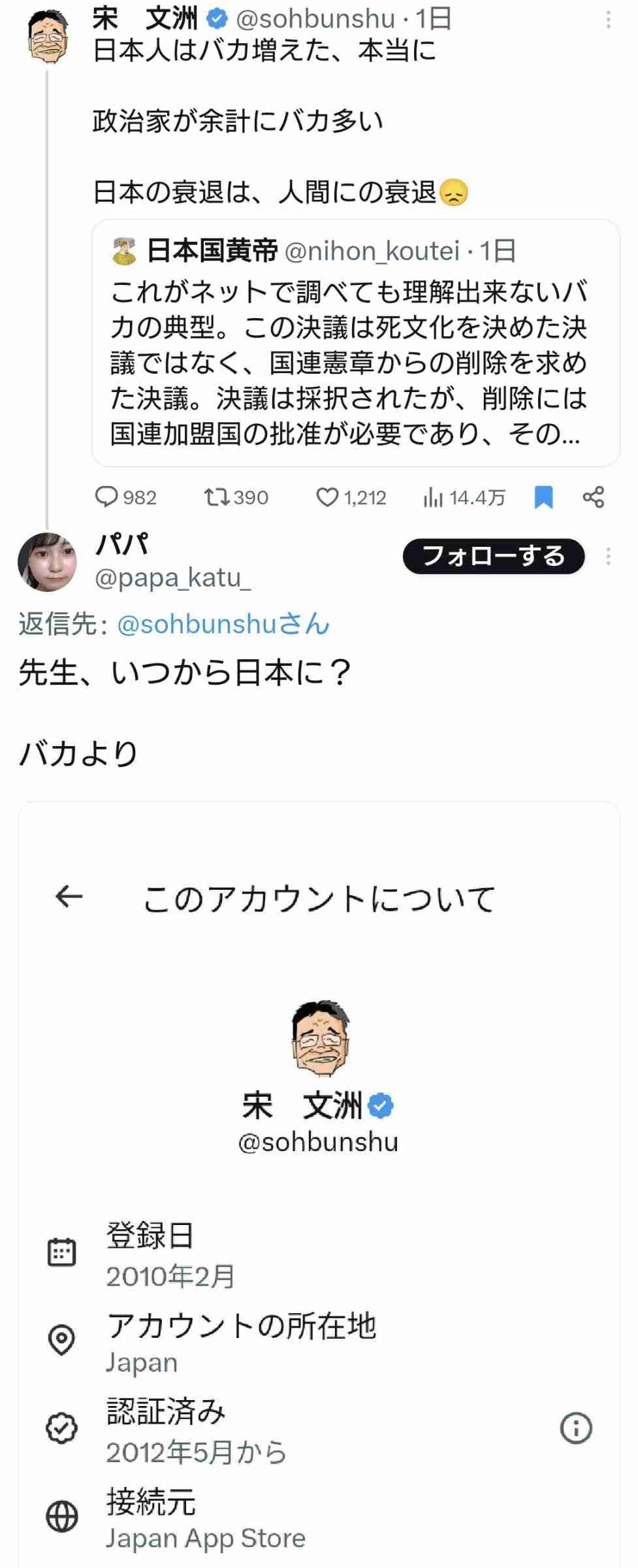 宋文洲は変節とアカウントの在住地暴露で闇が深すぎる…