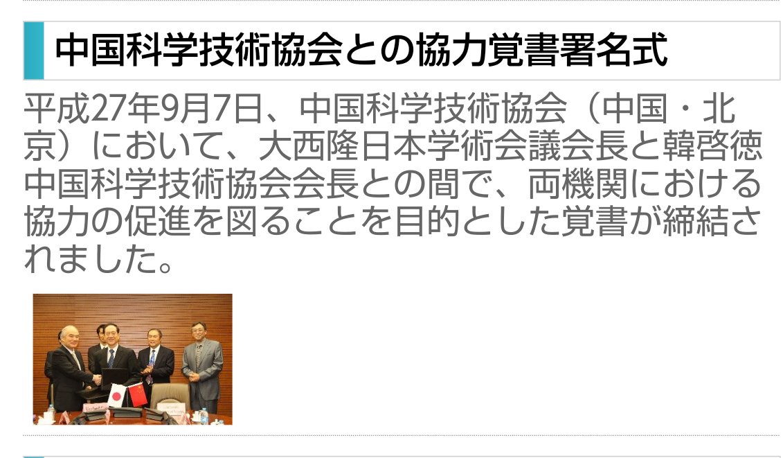 税金で運営される内閣府の #日本学術会議 が中国科学技術協会と覚書を交わし、結果的に中国の軍事転用可能な技術に協力する日本の科学者の“窓口”になっている。