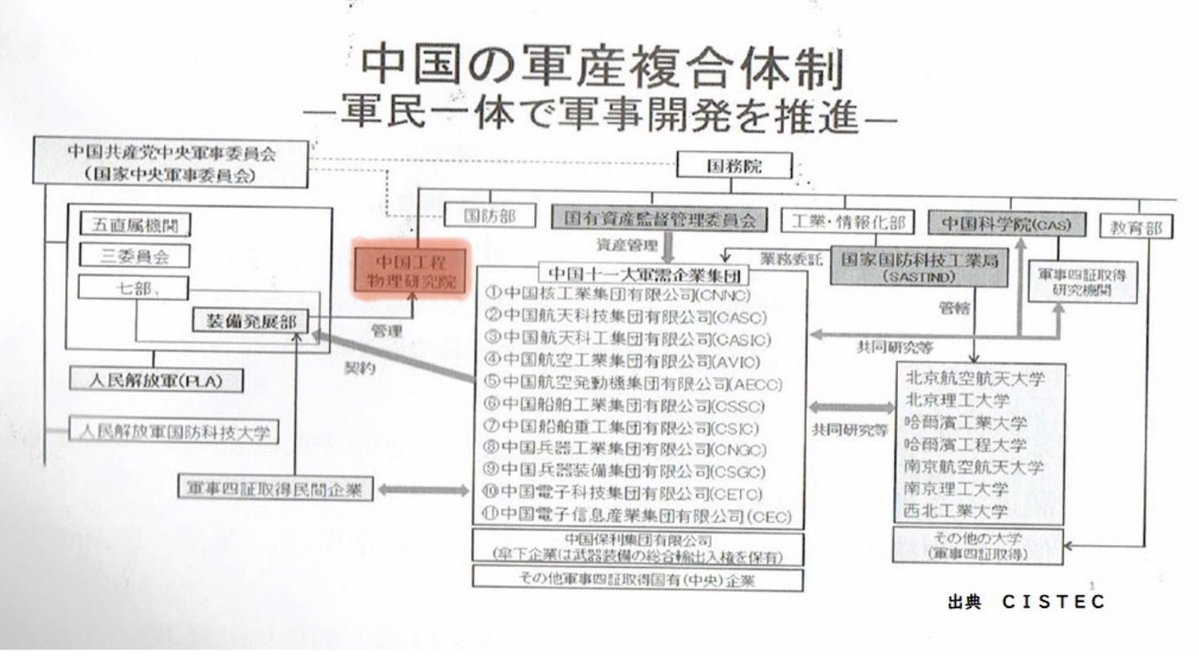 日本学術会議が覚書を交わした中国科学技術協会は、中国工程院と提携。この中国工程院は事実上、中国国防部の傘下。
