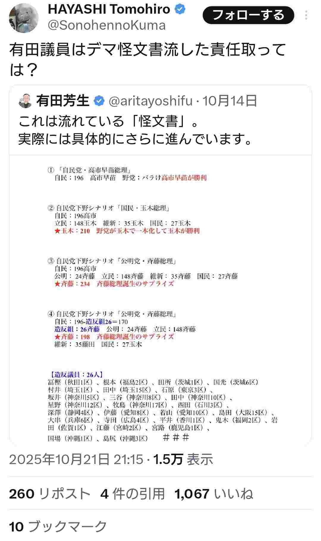 高市造反指令文書(対象者入り)をわざわざ公開するアホw