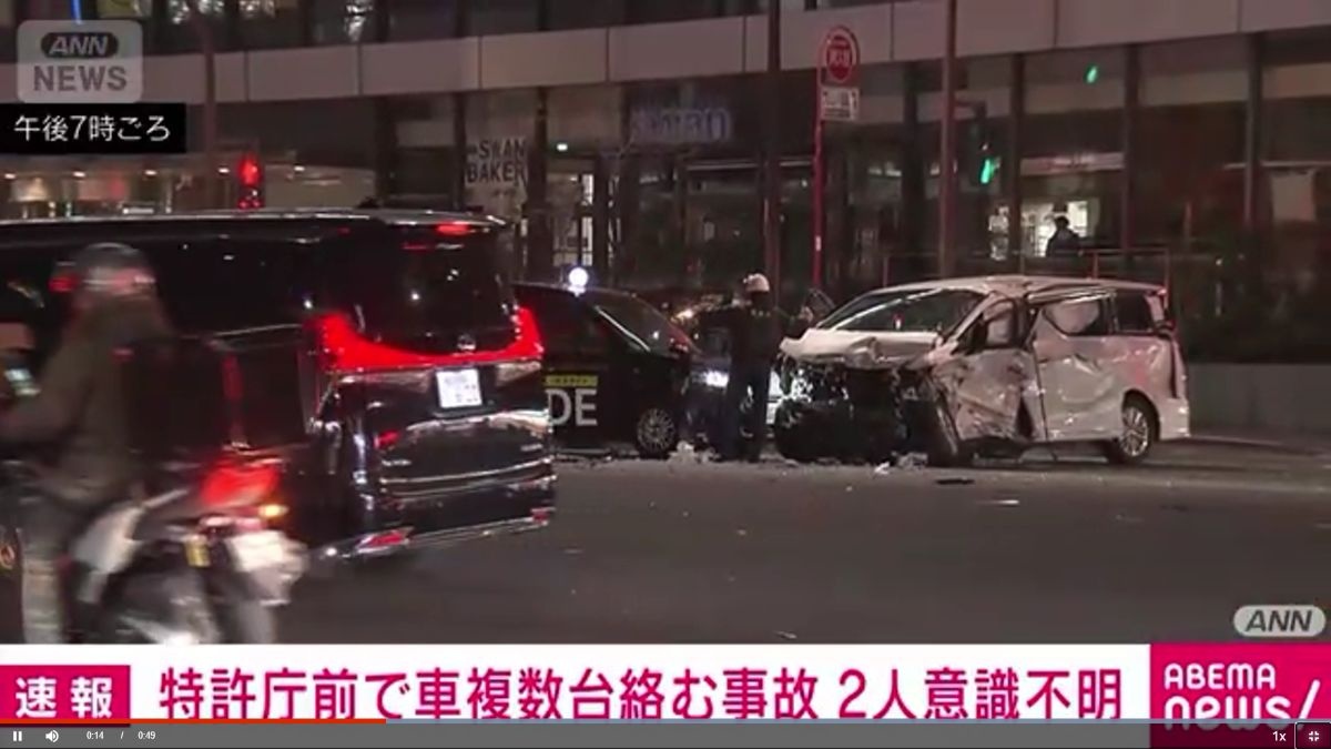 東京・赤坂で内閣府公用車が信号無視で多重事故 1人死亡 8人重軽傷 危険運転致死傷の疑いもあるとみて捜査 警視庁