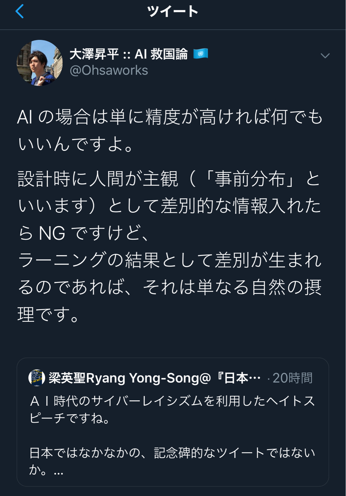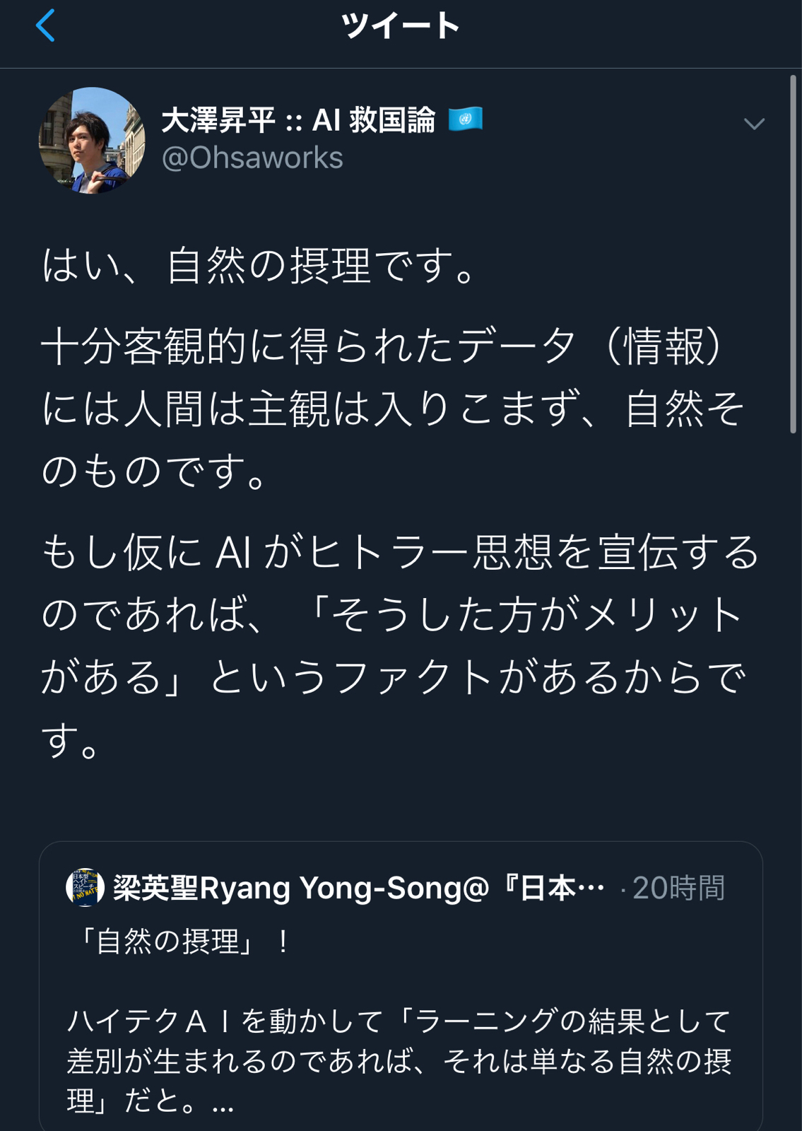 東大准教授、正論「AIがナチス思想を採用したらそれが自然の摂理。データに人間の主観は入らないので」