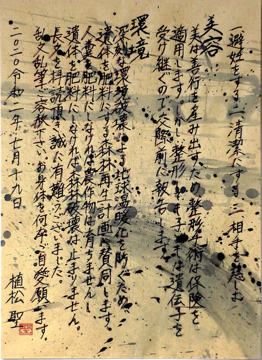 「死刑確定後も罪に向き合っていないのは明白だ。展示自体も彼の主張に感化される人々が現れる恐れがあり、有害でしかない」と失望した。植松死刑囚が「作品」出展 都内で23日から「表現展」 被害者の家族失望「贖罪の気持ちがない」