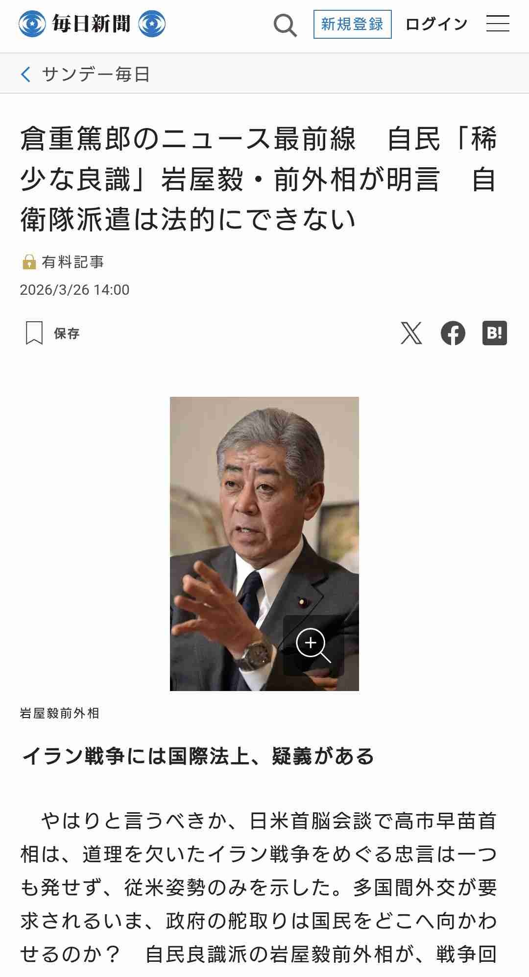 毎日新聞「岩屋毅氏は自民の稀少な良識派である」
