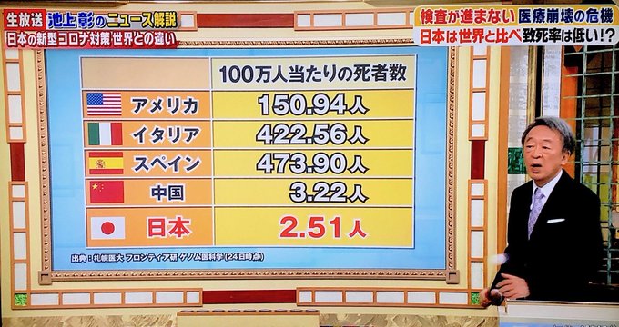 ・ドイツや韓国のコロナ対策を賞賛するも、実際の死者数は隠す。