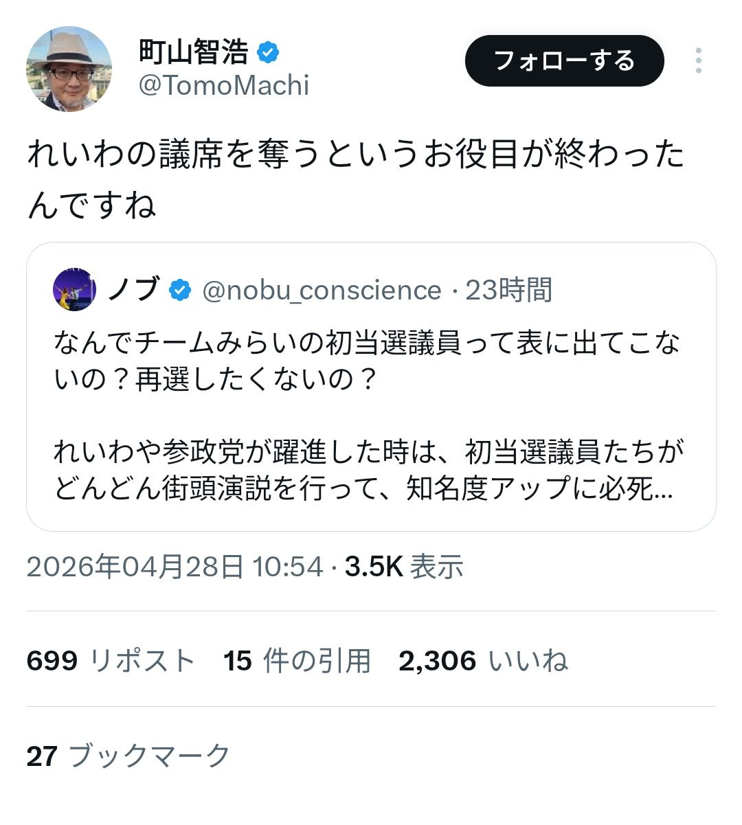 烈士町山智浩さん「チームみらいはれいわの議席を奪うために送り込まれた刺客」