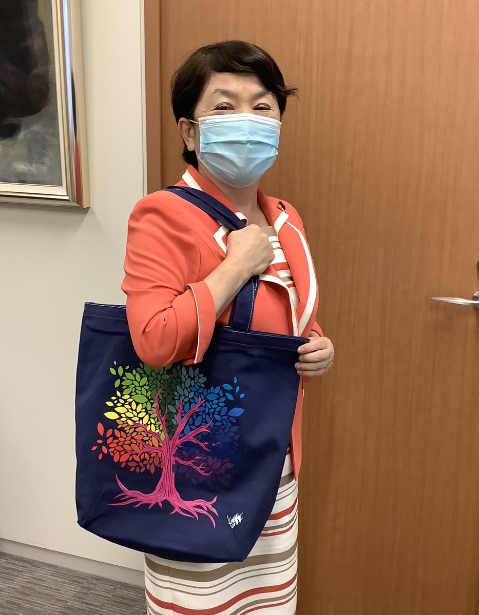 北海道の白老町にできたウポポイのバッグです。表の樹は調和の木、自然を讃え、人を讃えるデザインだそうです。https://twitter.com/mizuhofukushima/status/1283316703854686208