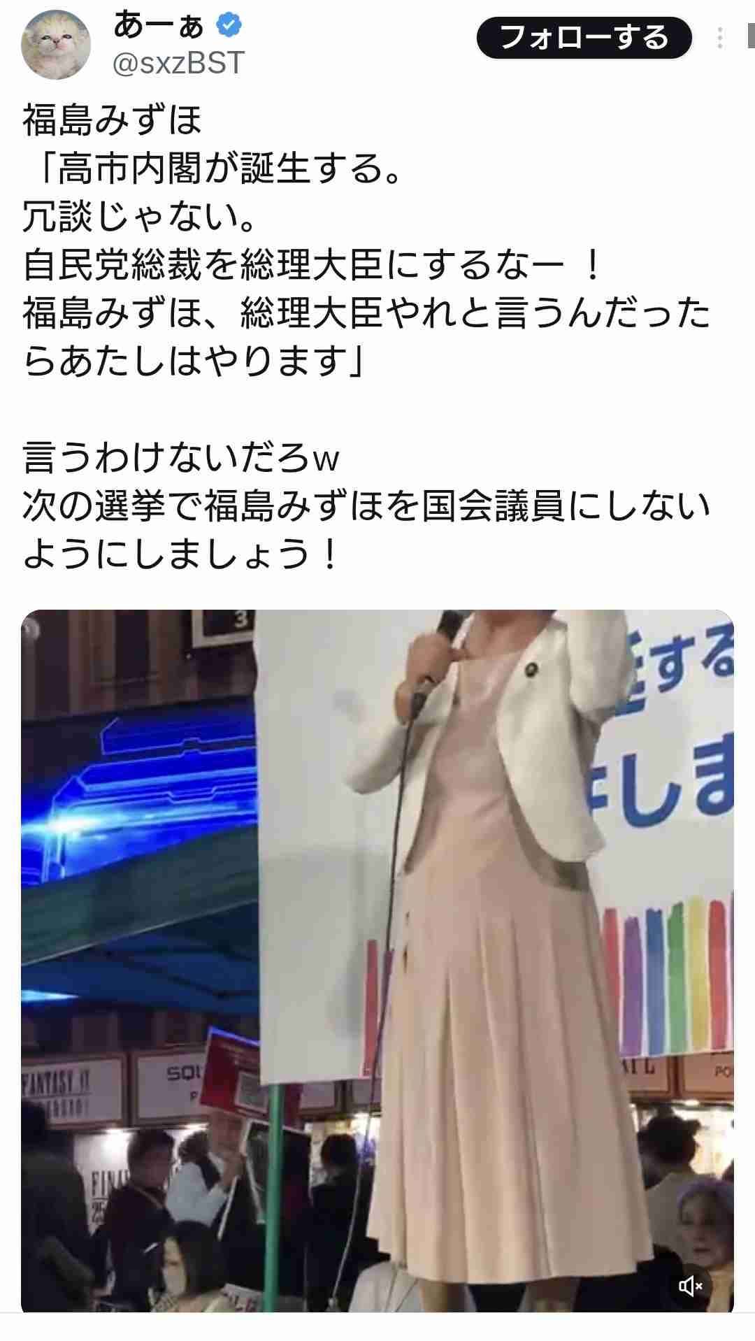 福島瑞穂氏「高市内閣が誕生する冗談じゃない総理大臣にするな!やれと言うんだったら私はやります」