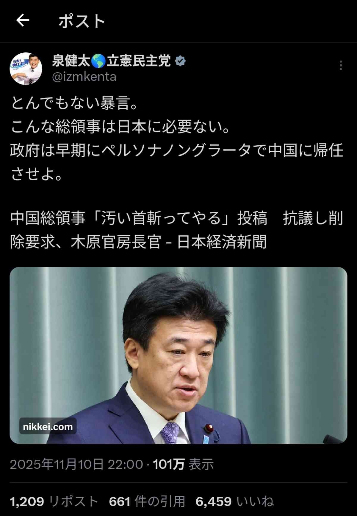 この領事は高市にとってはいてくれた方がいい、左翼にとってはいられては困る