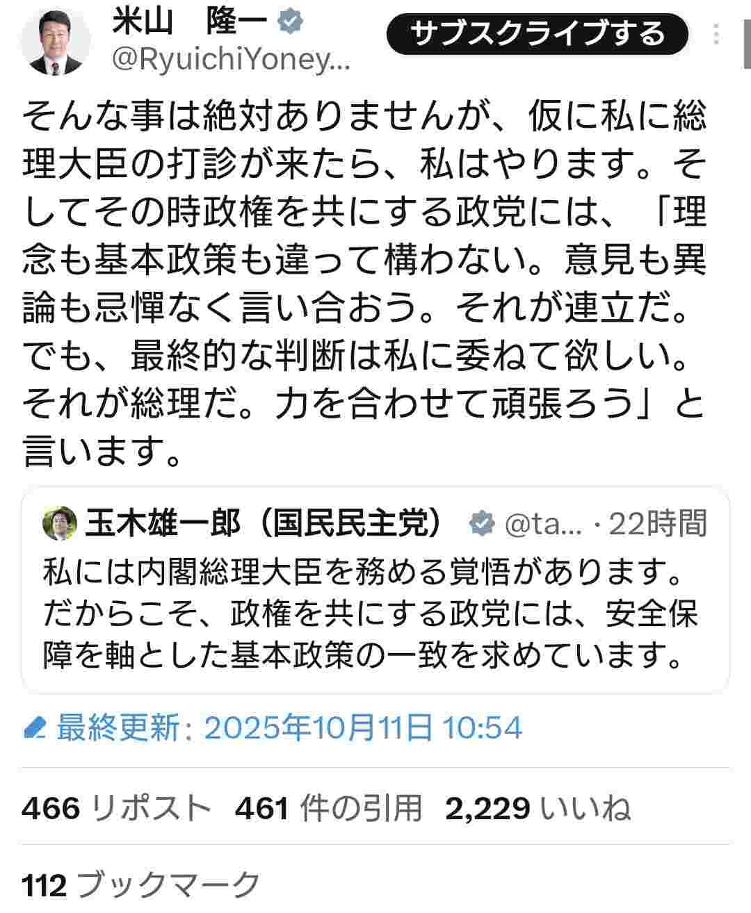玉木は「では決選投票では国民民主は米山氏に投票します」と言ってやれ