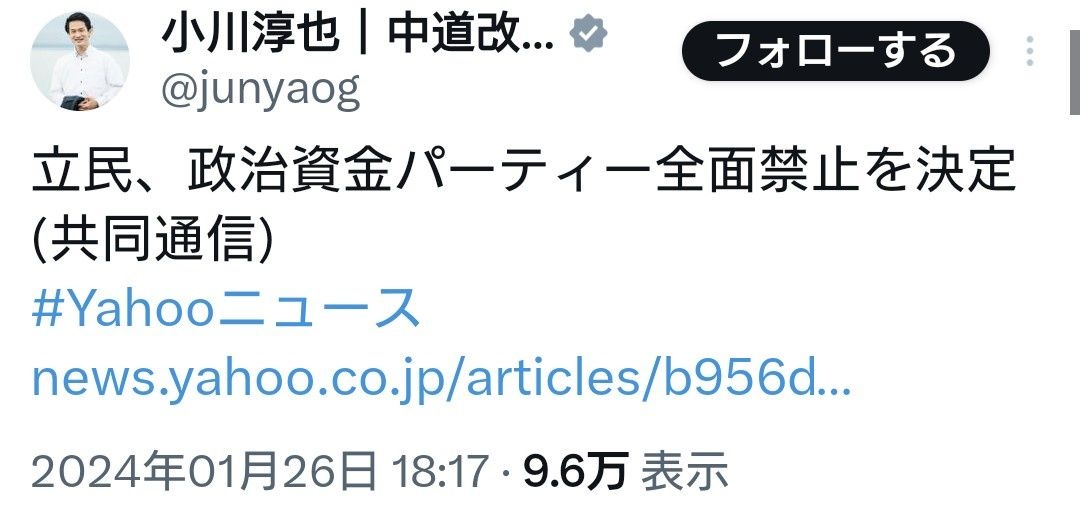 中革連・小川氏、幹部ら政治資金パーティー「制約するつもり毛頭ない」 [662593167]