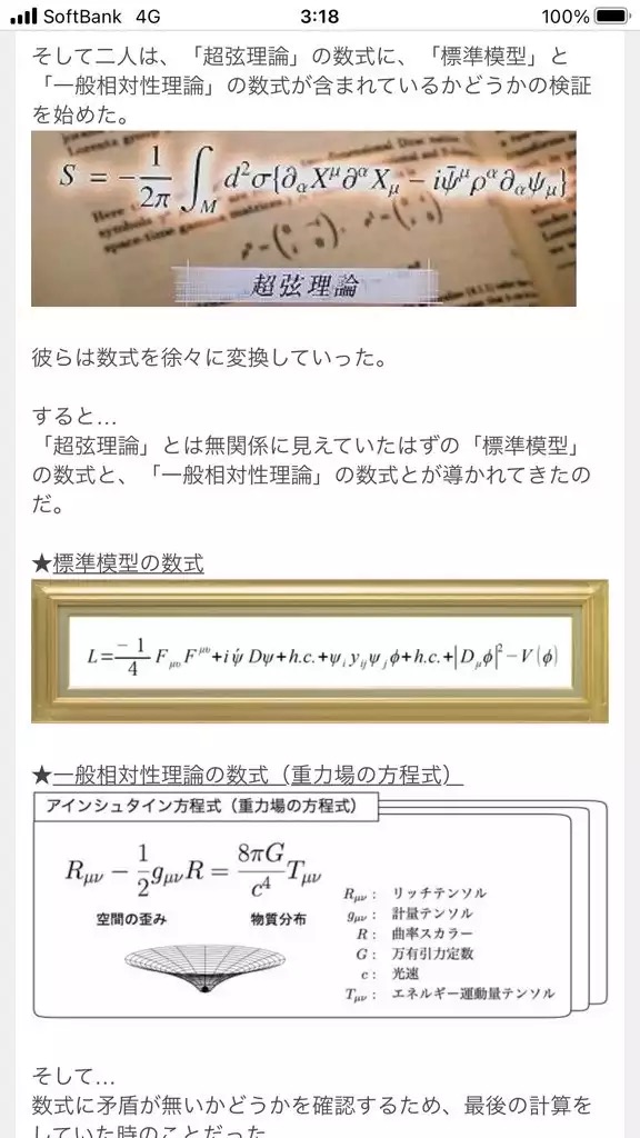 統一理論 超ひも理論以外に無いのは 方程式を完成させるのが困難だからと判明 日経新聞で報道