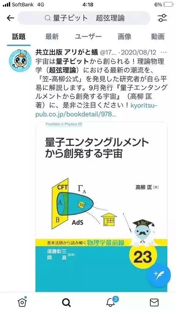 日経新聞で報道理論物理学者の注目を集めている。