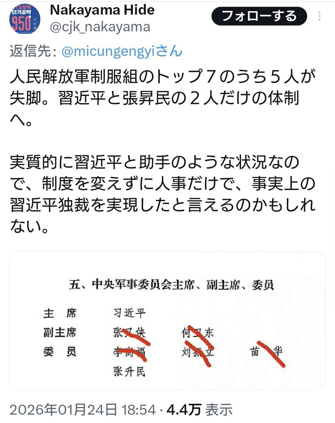腐っても一応トップレベルの軍人をこんなに粛清してどうやって台湾攻めるつもりなわけ?キンペーは