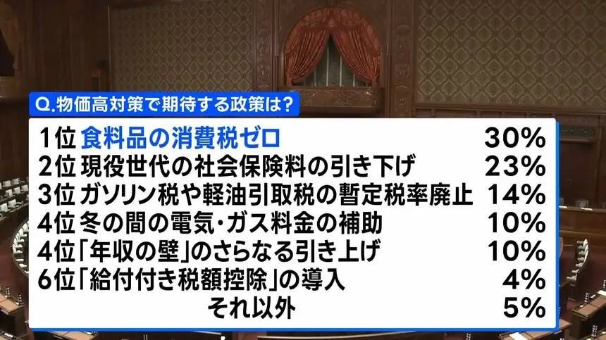 【10月の世論調査】で「高市総裁に取り組んで欲しい政策」で1位になったのは「物価高対策」だったが、【11月調査】ではより具体的に「政府・与党が検討している物価高対策のうち期待している政策」を聞いた。