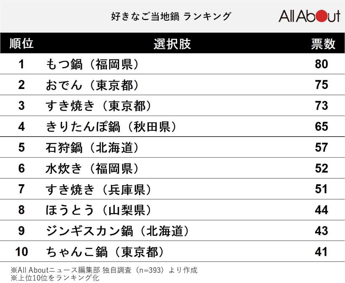 鍋料理のシーズン到来! 好きな「ご当地鍋」TOP10 2位おでん(東京)を抑えた1位は福岡のあれ