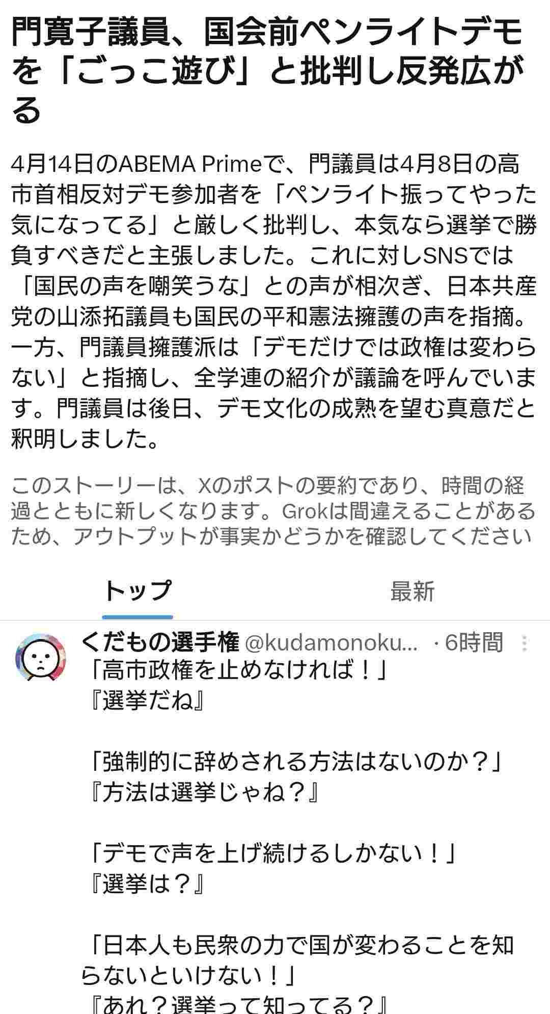 デモがなんの効果もないどころか高市の支持につながるのがな