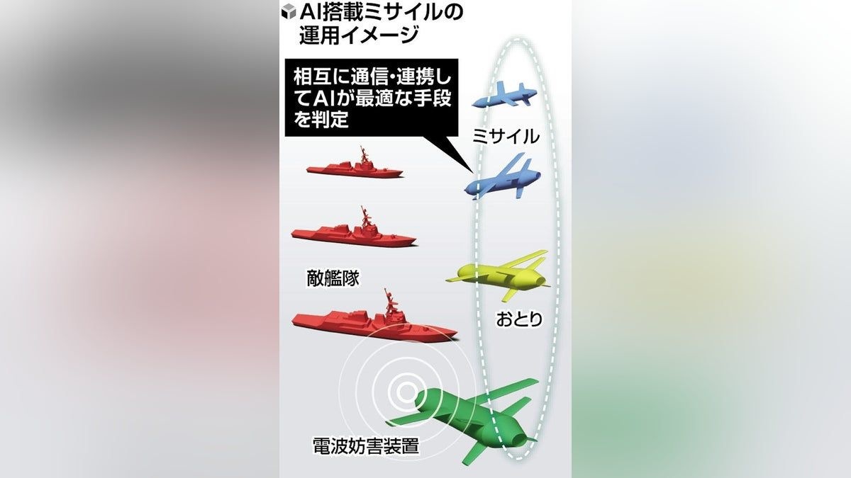 防衛省は来年度から、複数の対艦ミサイルの弾頭にAI(人工知能)を搭載し、相互通信を可能にする制御システムの開発に乗り出す。AIが最適な飛行経路や手段を算出することで、遠方の敵艦艇に対する自衛隊の対処力を向上させる狙いがある。日本への攻撃を思いとどまらせる抑止力の強化にもつなげたい考えだ。