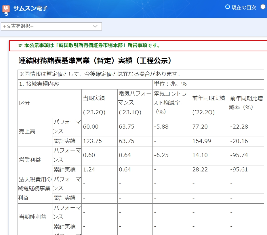 かろうじて黒字にしたという業績で、しかも半導体を主力とするDS事業については、第2四半期には「4兆ウォン台の損失を出した」と見られています。