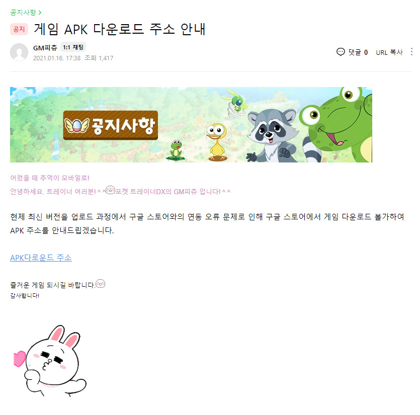 しかしその後何日経っても『ポケットトレーナーDX』が復活する兆候はない。苛立ちを見せたのかとうとう運営側はAPKファイル、