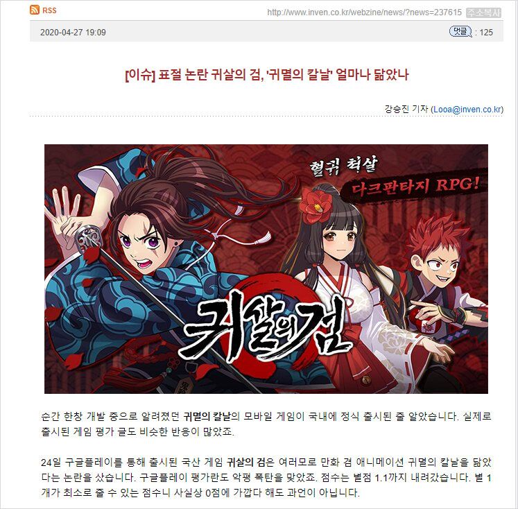 2020年4月に発売されたこのモバイルゲームは、タイトルからイラスト、キャラクターに至るまで、『鬼滅』をそのまま模倣。