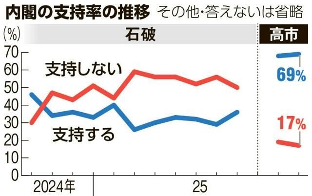 朝日新聞社は11月15、16の両日、全国世論調査(電話)を実施した。高市早苗内閣の支持率は69%(10月の発足直後調査は68%)と、歴代屈指の高さを維持している。内閣不支持率は19%だったのが17%になった。