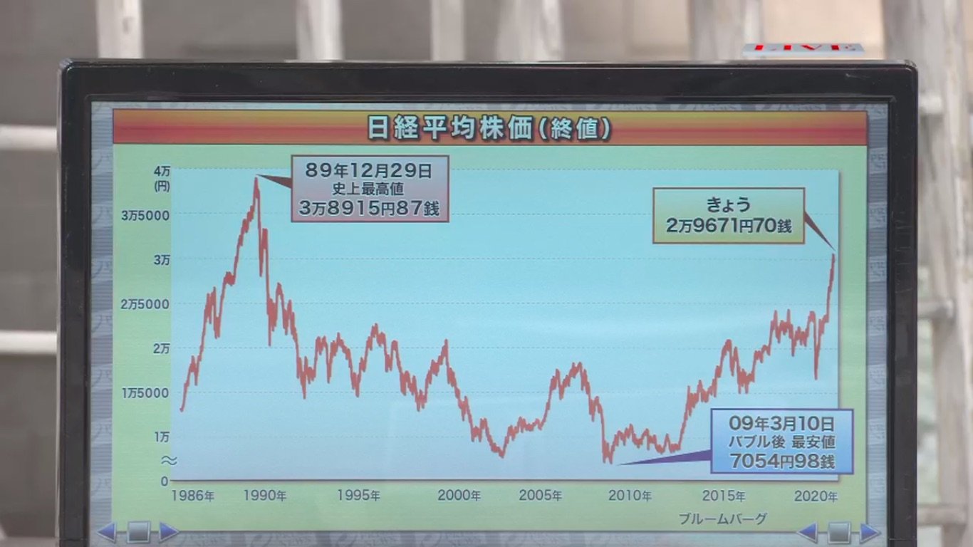 およそ30年ぶりに3万円台を回復した日経平均株価。その後3万円を割り込んだが、過去30年間の推移を見ても高い水準にあることは明らか。今の株価は30年前と同じようなバブルだとご覧になりますか。