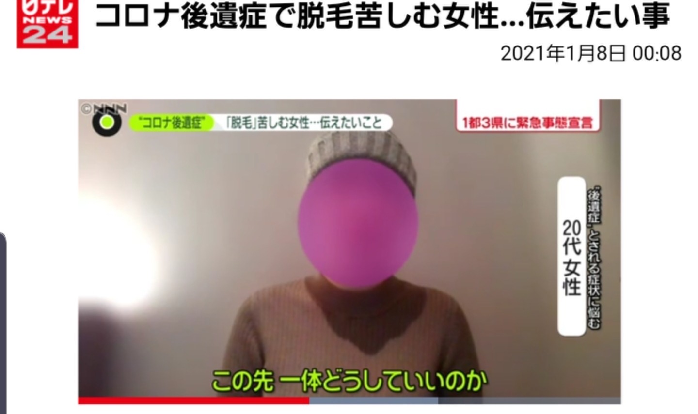 20代女子大生、コロナ後遺症の脱毛が治らず「もう就職も結婚も絶望的…」 感染者の50%が発症